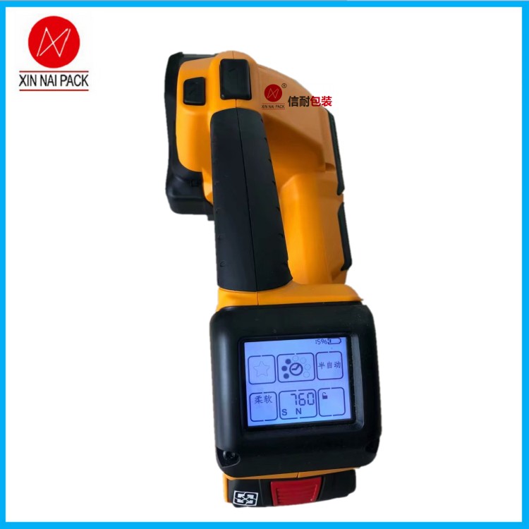 STB-73手提電動打包機、輕量化完美平衡,智能化設計:實時指示施加的拉伸力,電動控制的打包流程,打包帶對齊指示,直觀設計:,借助手指壓力進行控制的可變拉伸速度,帶有觸摸板校準的數字化用戶界面,打包功能收藏夾的科技型打包機。