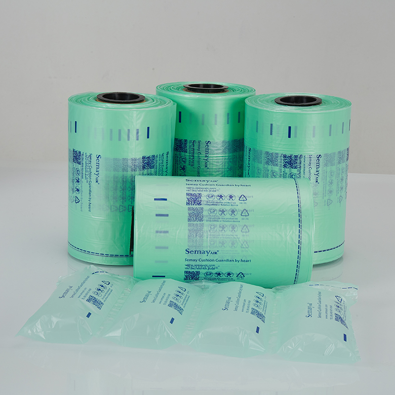 緩沖氣墊卷膜由特殊PE材料制成,每個中間以點短線相連接,方便易用;根據(jù)厚度不同充氣后可承受至少30-50公斤壓力,并且具備良好的彈性和韌性。緩沖氣墊可重復使用,所用原料皆不含有毒物質及有毒重金屬,不管是在生產、使用或儲存任何情況下,原材料(塑膜)或成品(氣墊)都是完全干凈,不會造成任何的污染。